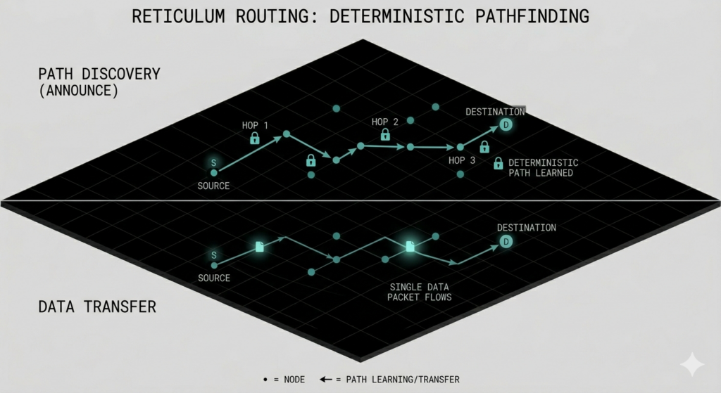This “host-device split” allows Reticulum to abandon blind flooding entirely in favour of deterministic, cryptographic addressing.